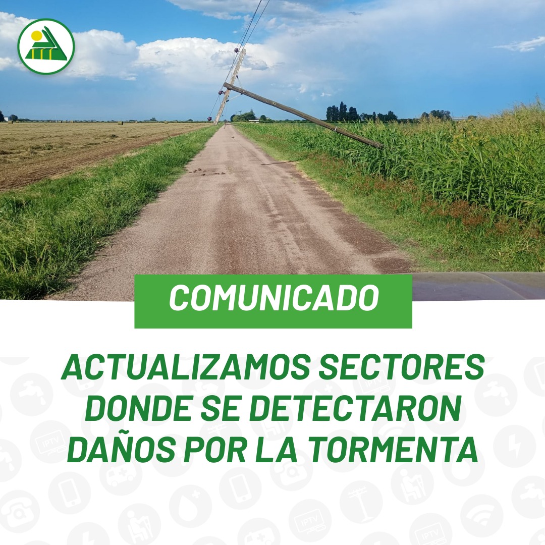 LA COOPERATIVA DE SERVICIOS PÚBLICS, INFORMA: Durante la tarde de este jueves 1 de enero, una fuerte tormenta afectó a un amplio sector de nuestra zona de cobertura.