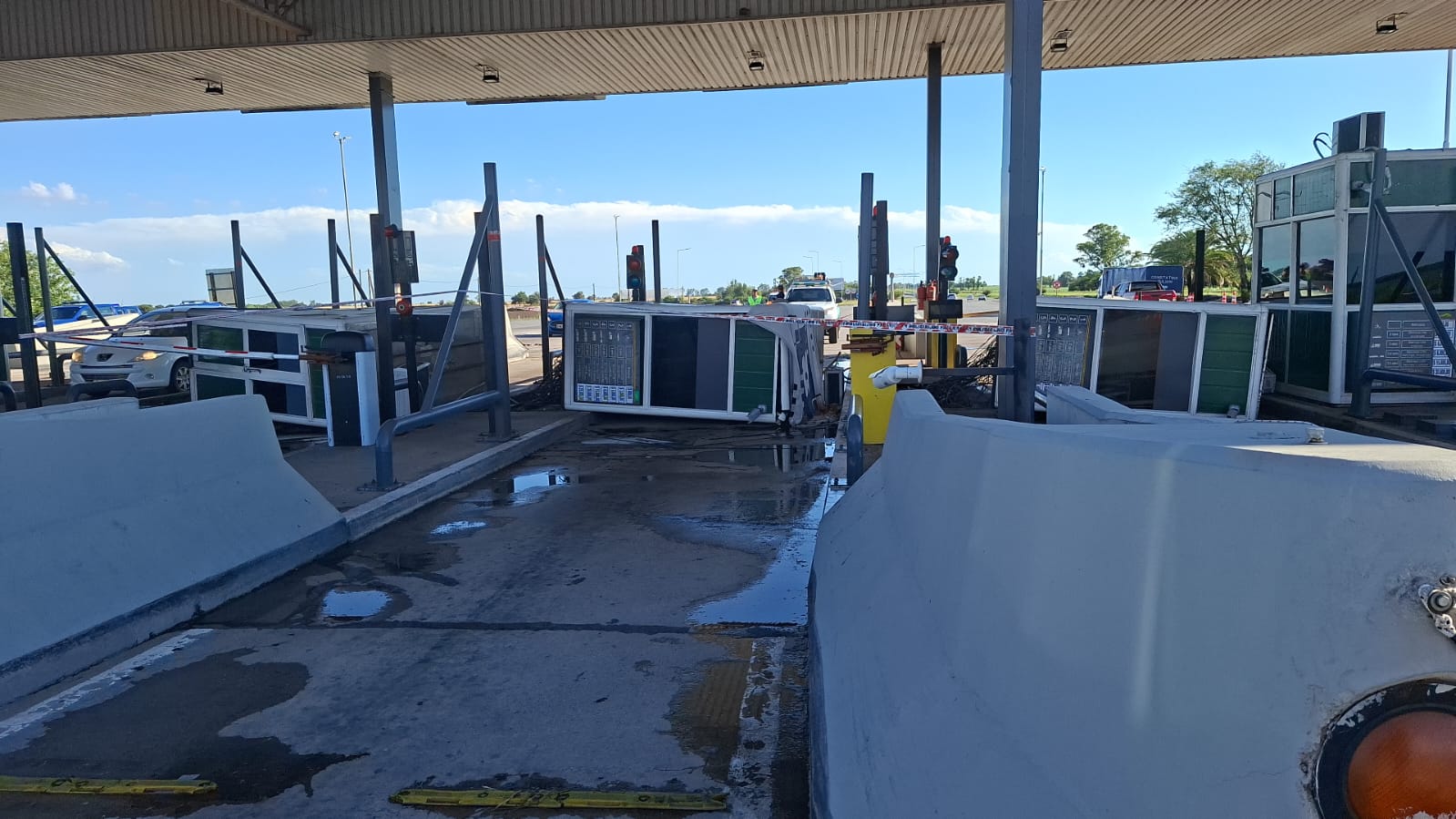 Se regisro el desprendimiento de las bases de tres cabinas del peaje, y una de ellas aprisionó con su estructura a un hombre de 61 años lo que causó un resultado fatal. Otros dos empleados sufrieron lesiones de traumatismos varios, quienes fueron asistidos por el servicio de emergencias. En el lugar intervinieron efectivos de Policía Caminera y Bomberos Voluntarios. Posteriormente se hizo presente personal de Policía Judicial, llevando a cabo las tareas investigativas correspondientes en el lugar del hecho.